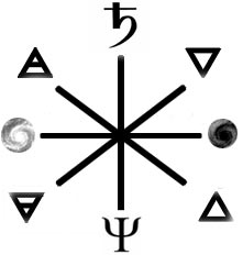 5. Visualize el símbolo astrológico de Saturno en la parte superior de la línea vertical y la letra griega «psi» en la parte inferior.